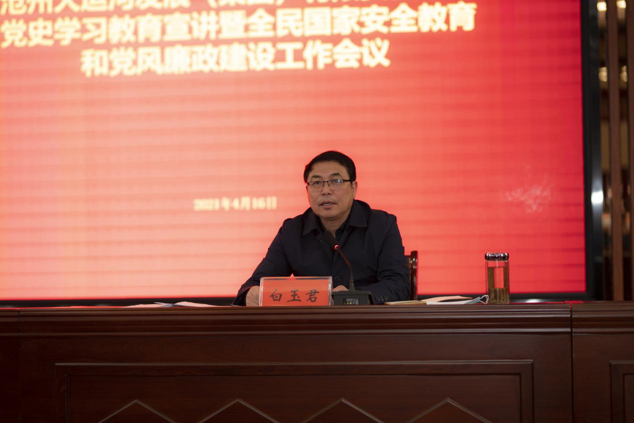 4月16日下午,集團公司召開黨史學習教育宣講暨全民國家安全教育和黨風廉政建設工作會議,黨委書記、董事長韓海霞出席會議作黨史學習教育宣講并對集團黨史學習教育提出具體工作要求。