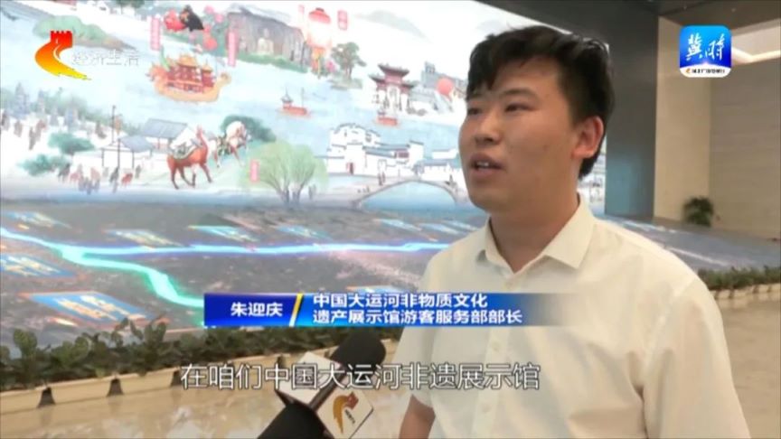 中國(guó)大運(yùn)河非物質(zhì)文化 遺產(chǎn)展示館游客服務(wù)部部長(zhǎng) 朱迎慶:主要展示運(yùn)河沿線八省市的非遺展品,還有非遺技藝,通過(guò)電子屏,可以看到運(yùn)河沿線的運(yùn)河走勢(shì),兩岸的繁榮景貌,以及代表性的非遺項(xiàng)目,比如江蘇的紫砂壺制作、蘇繡、浙江的西泠印社。